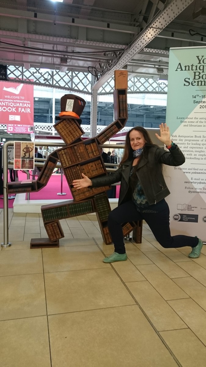 Urszula Kurtiak i przerobiony na książki Edward Ley na Targach Książki Antykwarycznej w Londynie