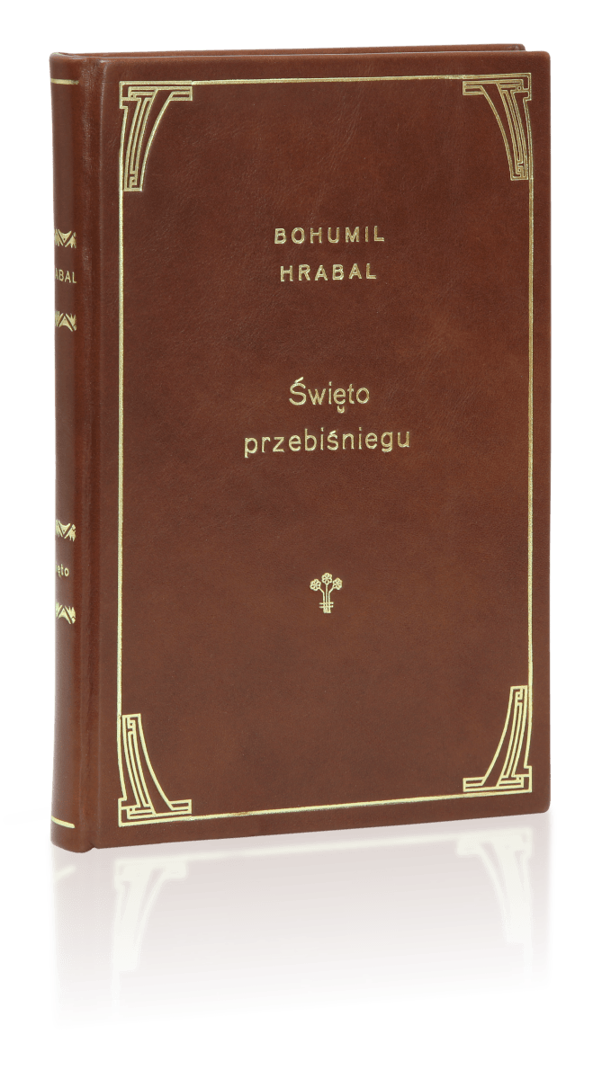 Książka Hrabala Bohumila, Święto przebiśniegu ręcznie oprawiona w skórę
