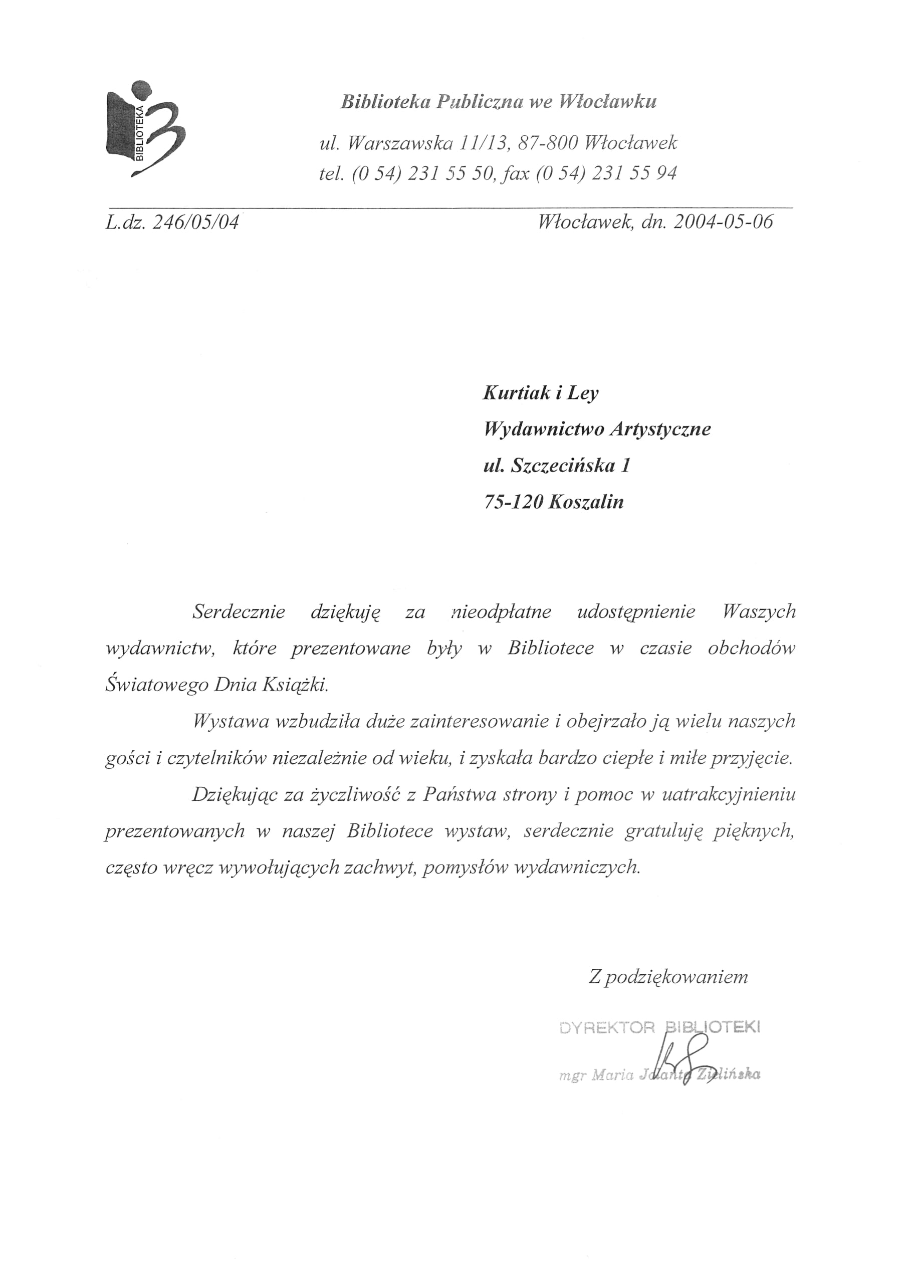 Wystawa w Bibliotece Publicznej we Włocławku w czasie obchodów Światowego Dnia Książki w 2004 r.